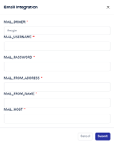 - For Gmail integration, you need to input the required fields (such as email, password, SMTP server, and port).
