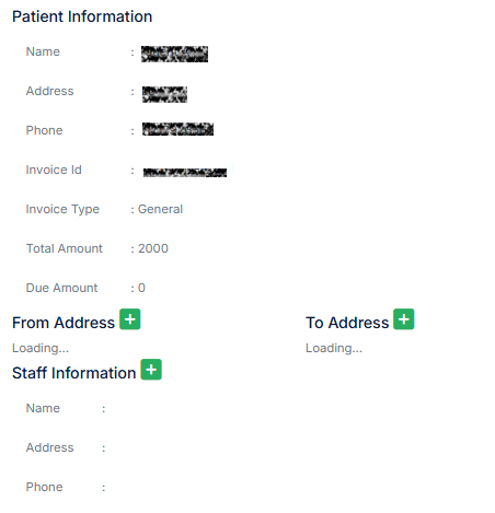 Input Date: Enter the invoice date. Select Patient Name: Choose the patient name from Patient > Patient List. Select Service Name: Select the service name from Setting > Account Setting > Subcategory. The price will auto-populate. If needed, you can change the price. Click the plus icon to save the service. You can add multiple services this way. Automatic Calculations: The system will automatically calculate the price and other details. Additional Charges: If the invoice has delivery or service charges, input these in the respective fields. Advance Amount: If the patient has an old advance, it will show in the advance field (Account > Advance > Advance Report). Payment Method: If the patient has paid the amount, select the payment method from Setting > Payment Method > Offline Payment Method. Input the paid amount. If there are multiple payment methods, click the plus icon and add them in the same way.